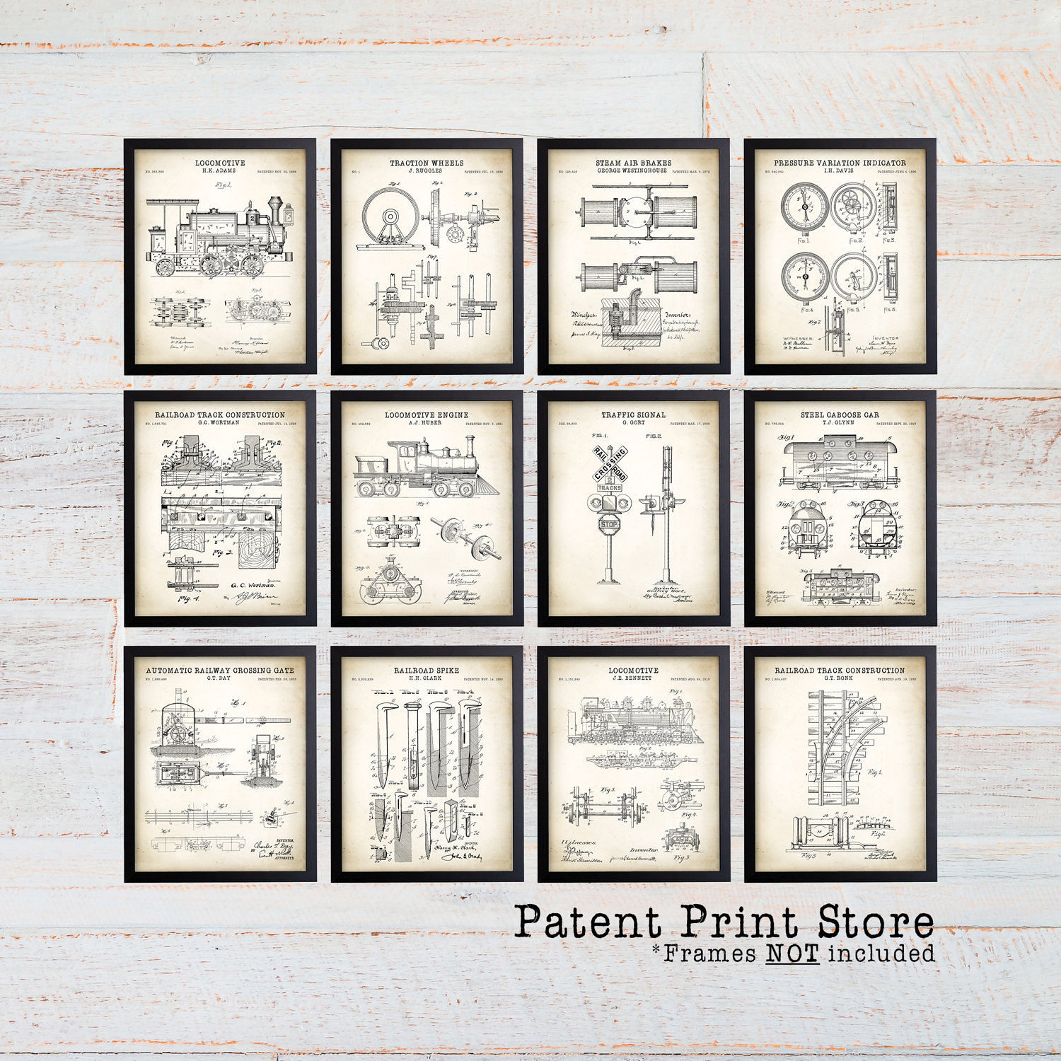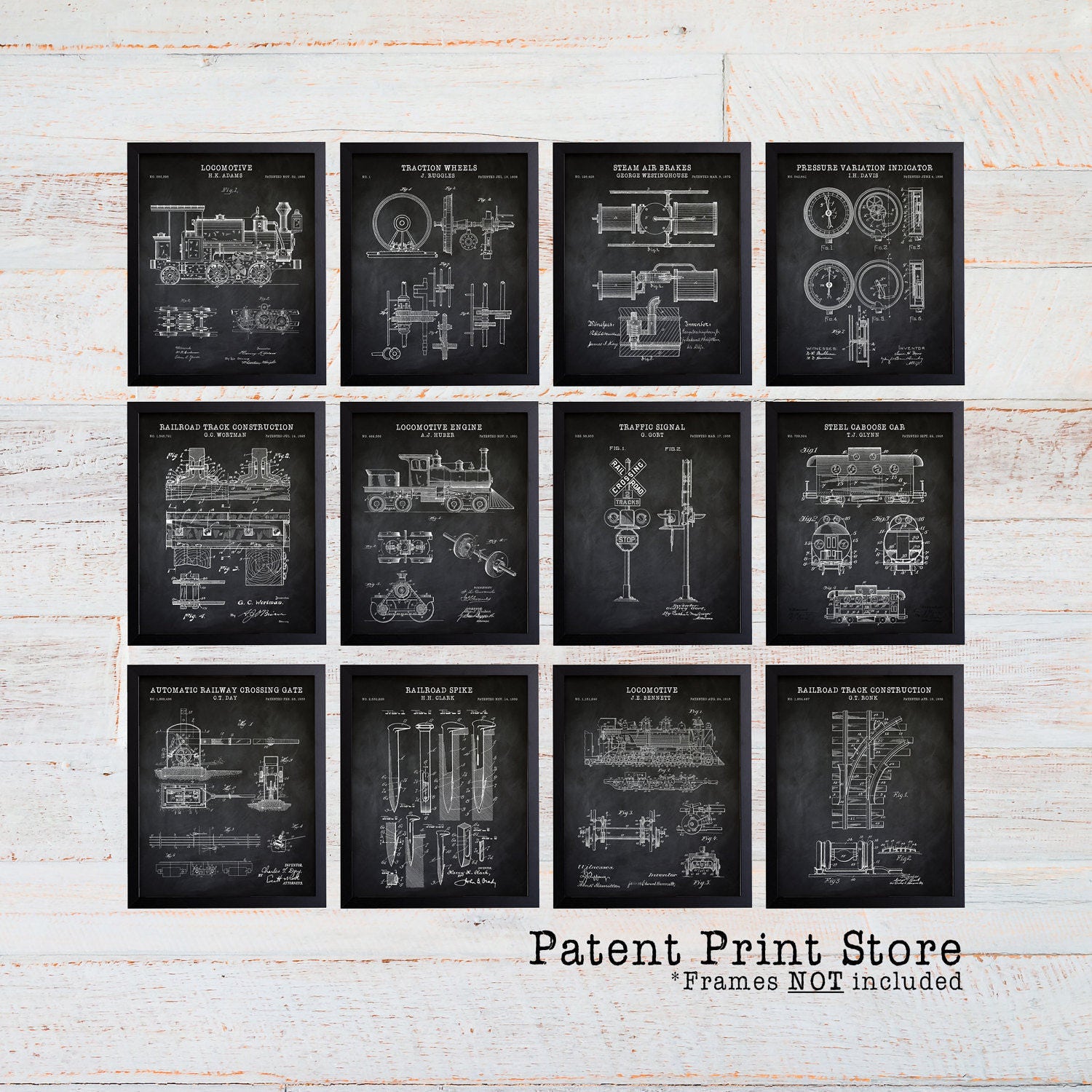 Railroad Patent Prints. Locomotive Patent Prints. Train Wall Art Prints. Vintage Trains. Train Art. Train Decor. Train Nursery Art Prints.