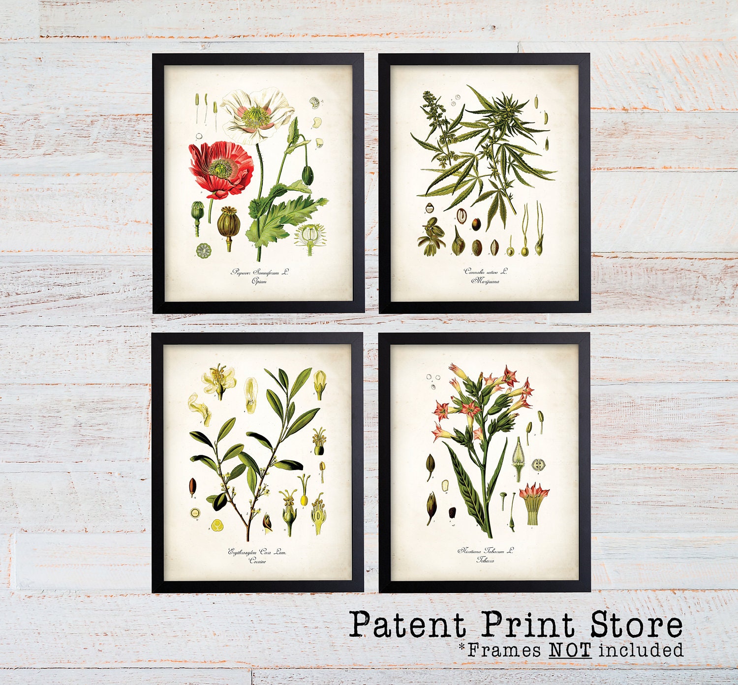 Medicinal Drug Print Set. Cocaine Cannabis Opium Poppy Tobacco. Botanical Art. Medicinal Decor. Botanical Print. Botanical Wall Art. 103