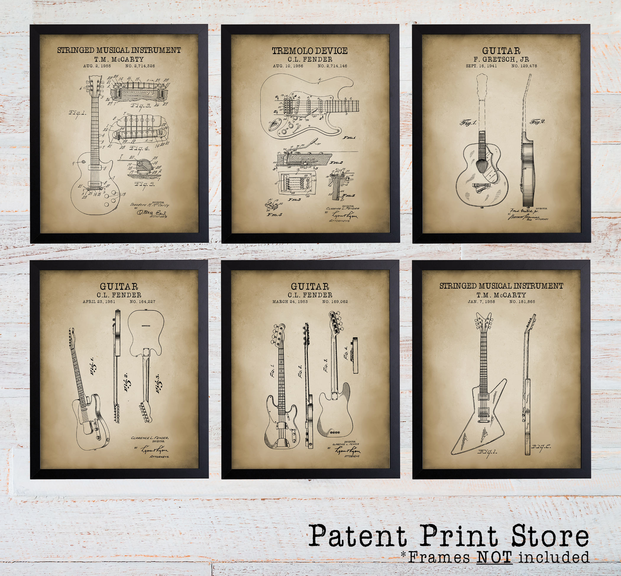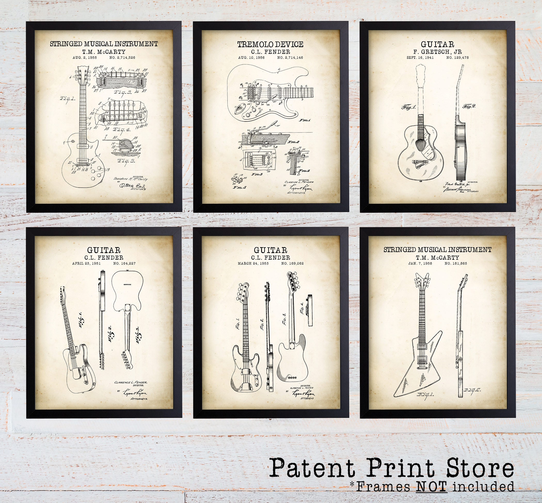 Guitar Patent Prints. Guitar Player Gift. Guitar Art. Guitar Patent Poster. Guitar Patent Art. Music Room Wall Art. Dorm Room Decor. 236