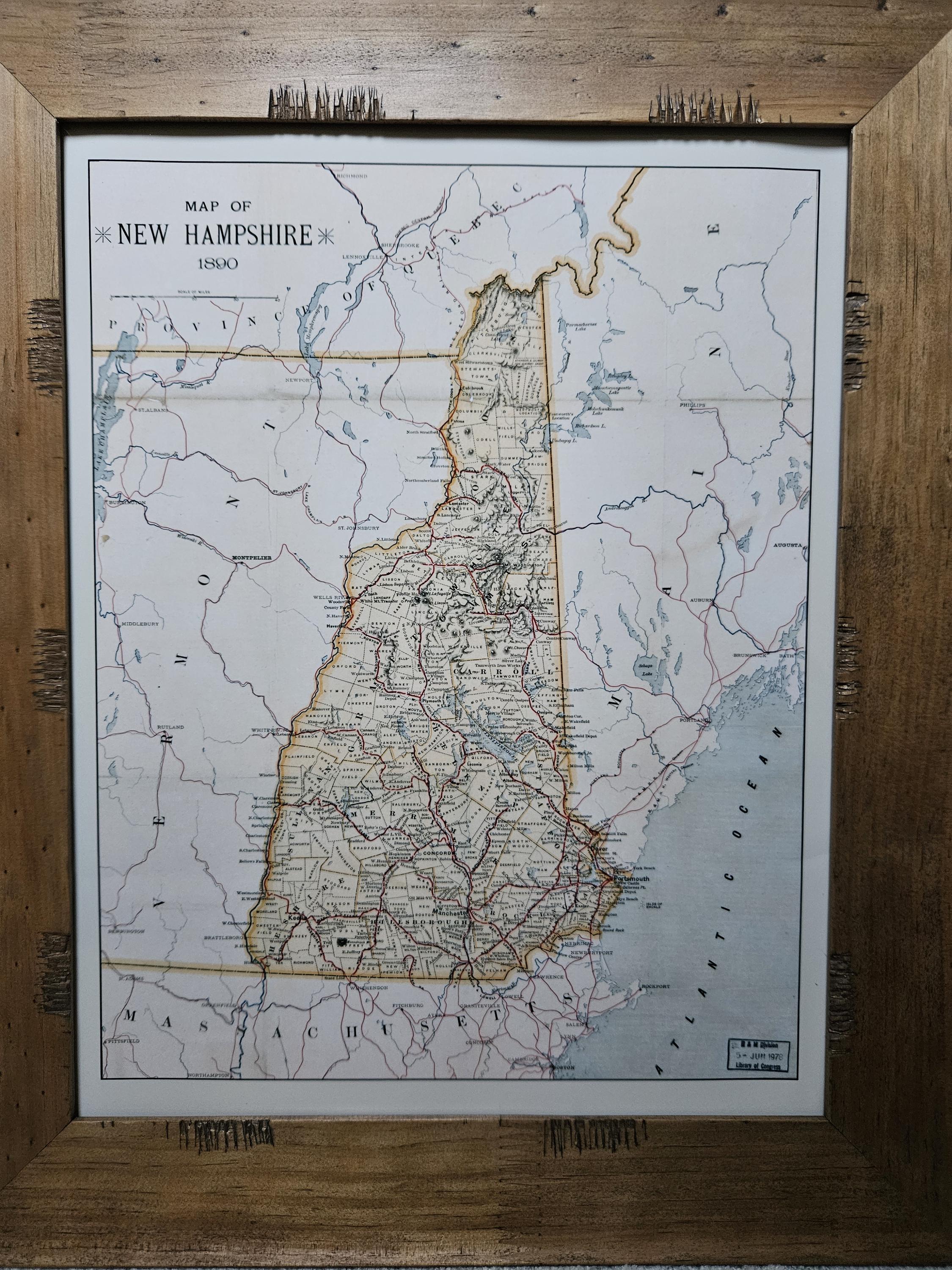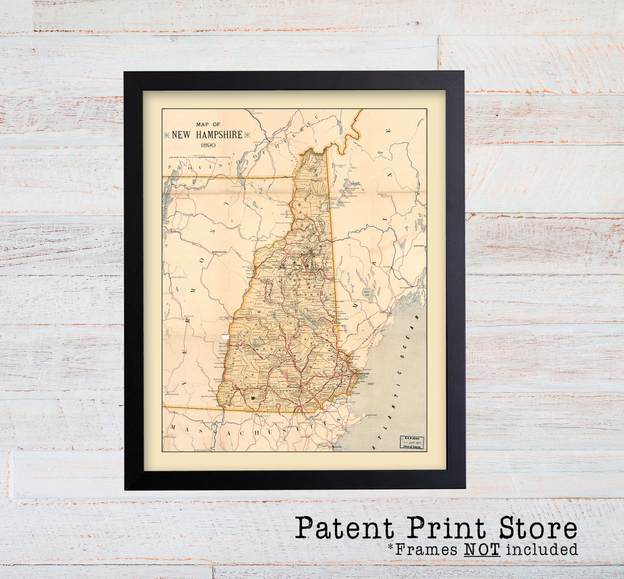 Antique New Hampshire Map. NH Map. Map Art. Map Decor. NH State Map. New Hampshire Art. New Hampshire Poster. Home Office Art Decor. 74