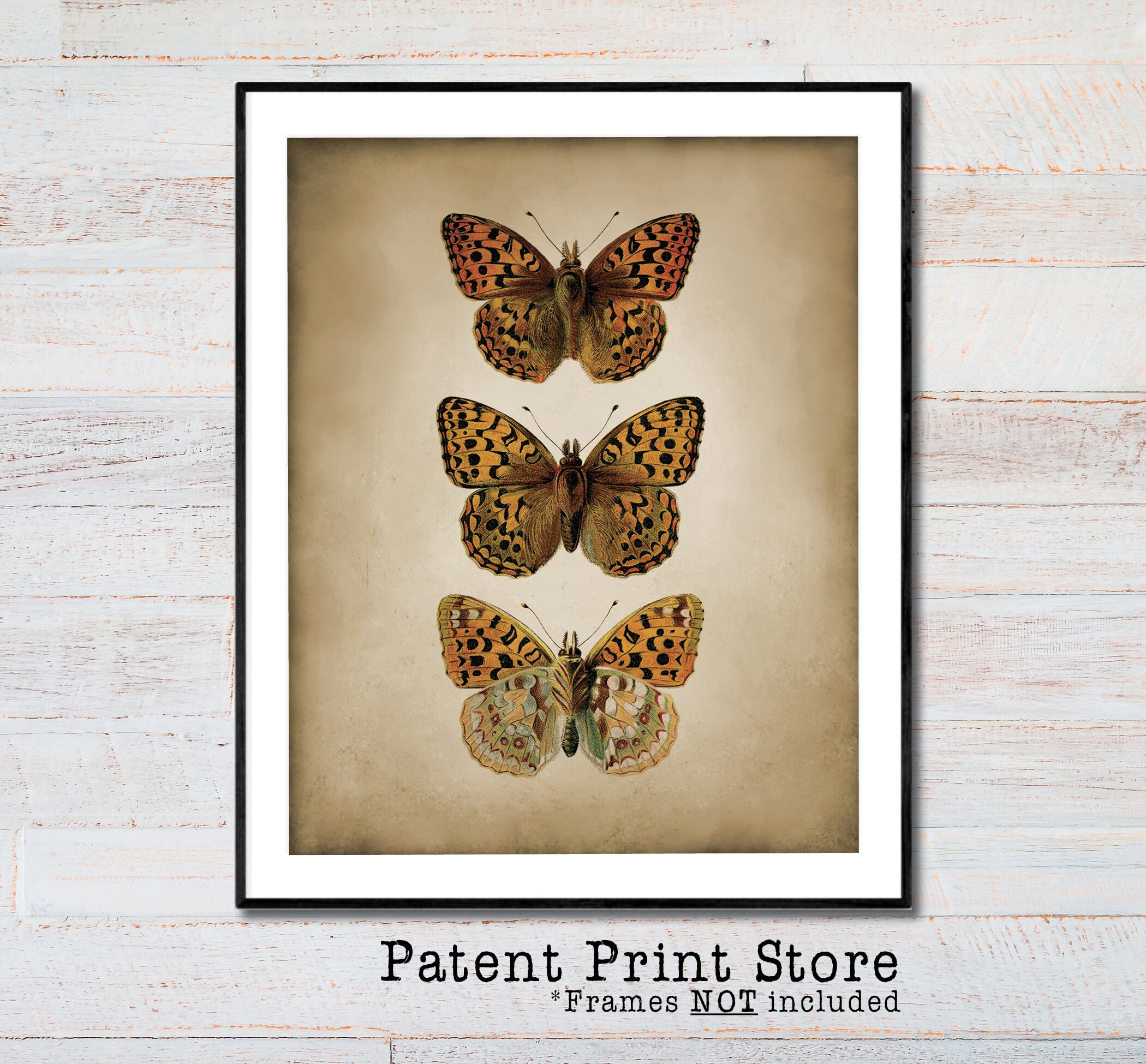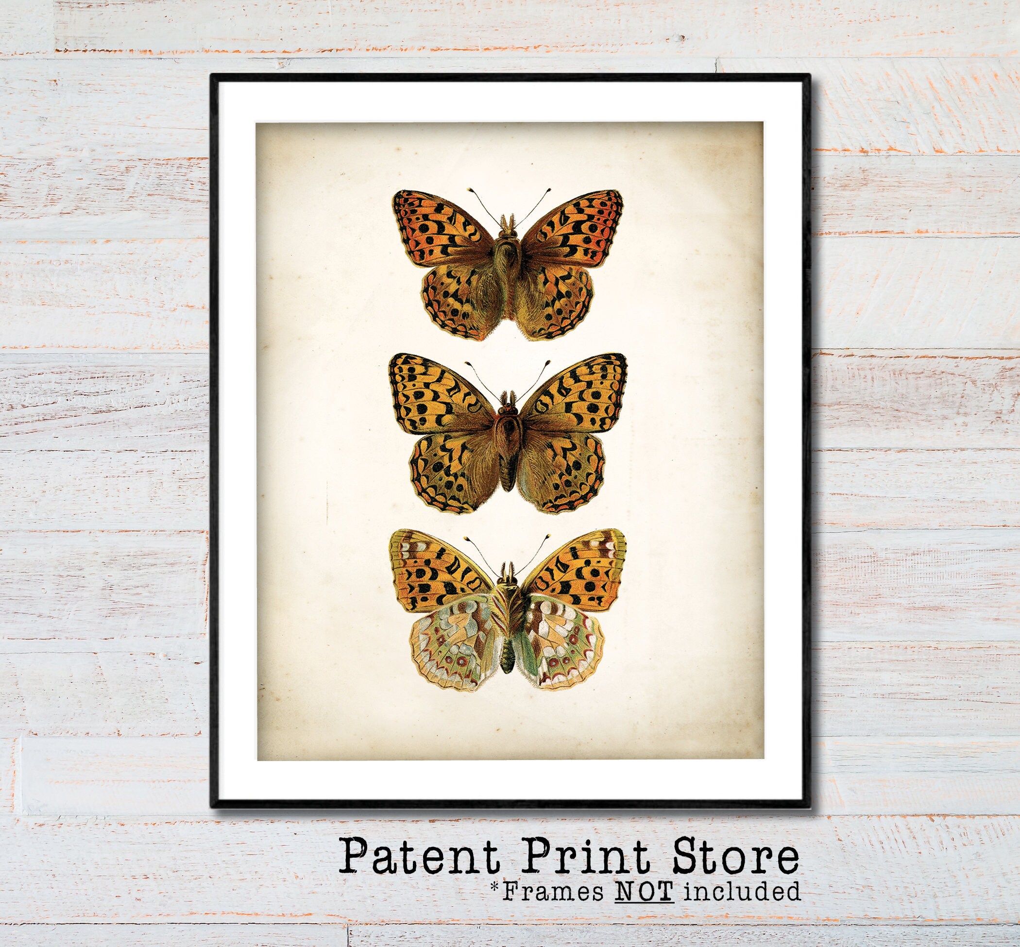 Antique Butterfly Print Poster, Antique Butterfly Art Print, Vintage Butterfly Print Wall Art, Butterflies Wall Art, Butterfly Decor