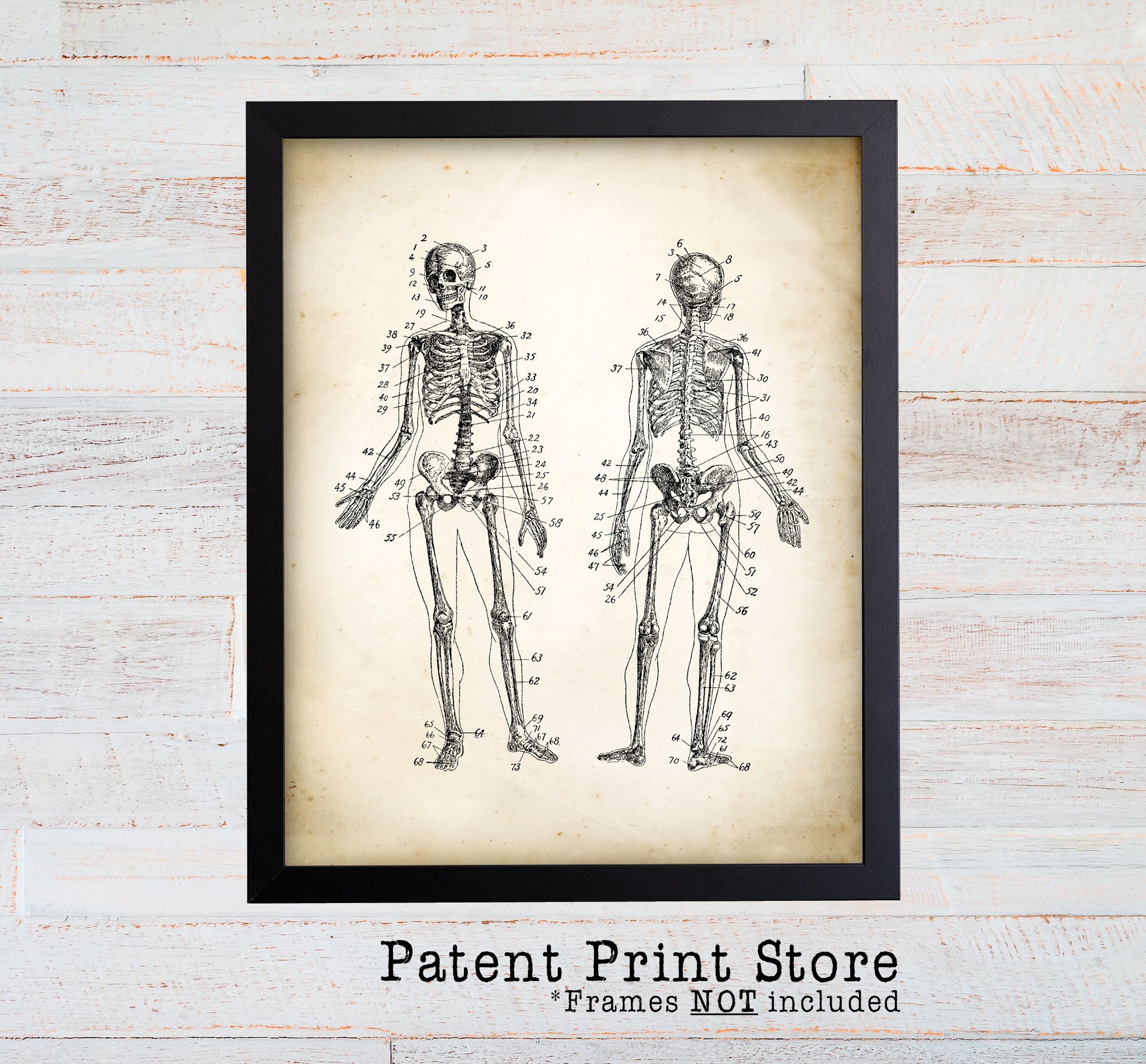 Vintage Human Skeleton Art Print. Anatomy Art Print. Science Illustration. Medical Wall Art. Orthopedic Surgeon Gift. Vintage Skeleton Art.