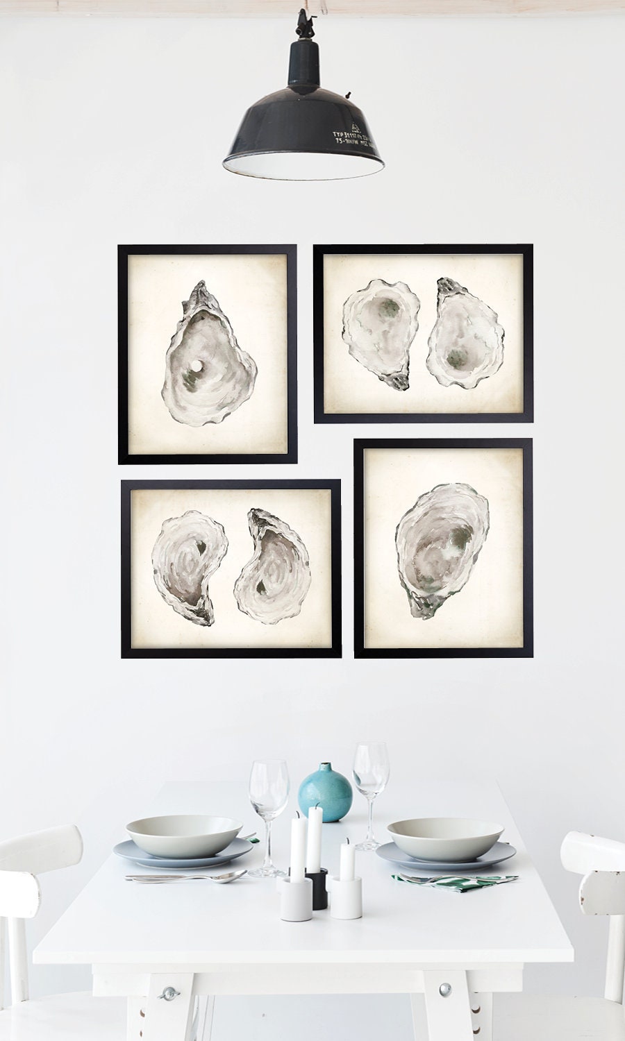 Watercolor Oyster Shell Prints. Coastal Decor. Coastal Art Prints. Seaside Wall Art. Beach House Wall Decor. Seashell. Seafood Kitchen. Bath